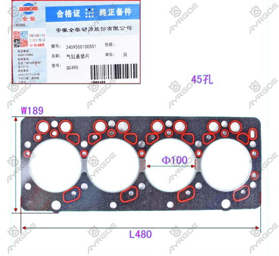 CYLINDER HEAD GASKET|ENGINE QUANCHAI(QC495)