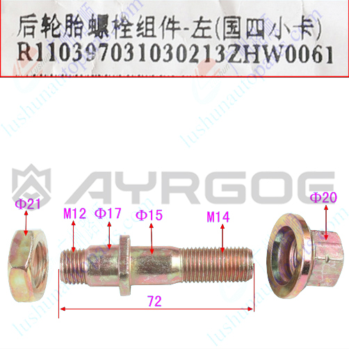 WHEEL STUD|FOTON K1(SHIDAI)|BODY W/H:162|BODY W/H:162